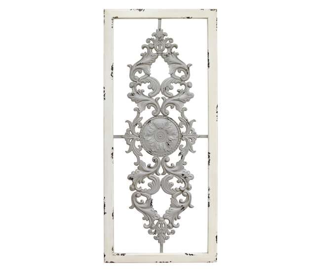 Your space is in dire need of this antiqued wood and metal wall panel has an intricate pattern with a classic style.