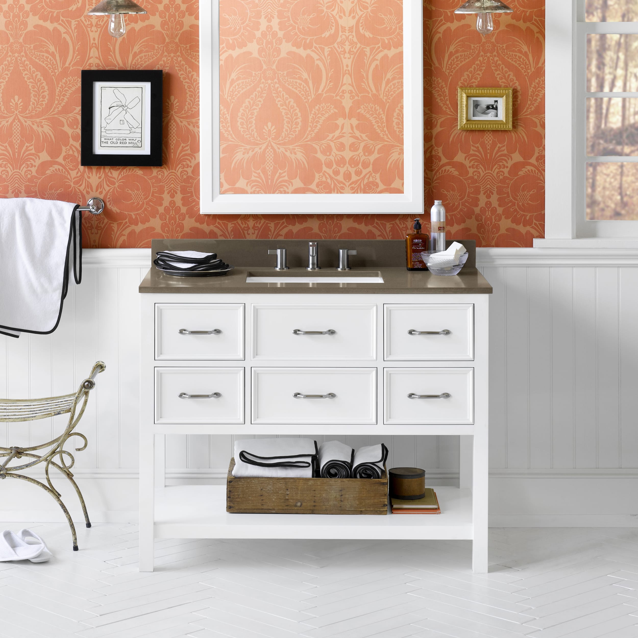 Enjoy free shipping on most stuff, even big stuff. Immagine di una stanza da bagno padronale chic di medie dimensioni con consolle stile comò, ante beige, pavimento in legno massello medio, lavabo sottopiano e pavimento marrone — houzz. Ronbow rebecca 31 wall mount vanity with one drawer and a frosted glass front finished in cinnamon list: The newcastle vanity is a perfect marriage of reserved style and…»
